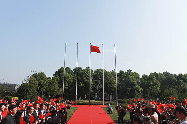 9月30日,四藥在公司新廠隆重舉辦升國旗儀式,表達對祖國的熱愛之情。在雄壯的國歌聲中,鮮艷的五星紅旗冉冉升起。500多位四藥員工肅穆而立,懷著崇高的敬意,自豪的高唱國歌,向國旗行注目禮,送上對祖國最美好的祝福。