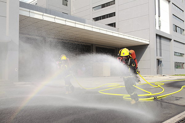 隨著演練總指揮常州四藥制藥有限公司董事長、總經理屠永銳一聲令下,演練正式開始。新藥廠103車間北區一生產線反應釜泄漏著火,前期處置、報警響應、警戒疏散、火災撲救、工藝處置、醫療救護、現場恢復等演練科目一一展現在觀眾眼前。通過演練檢驗和完善常州四藥制藥有限公司應急預案,提升應急處置能力。通過演練提高了員工對應急救援的熟練程度。消防東南中隊在現場迅速針對危險品險情,結合公司實際情況 有針對性進行了現場處置,環保應急車輛在現場布陣,防止污染擴散,空氣現場檢測。