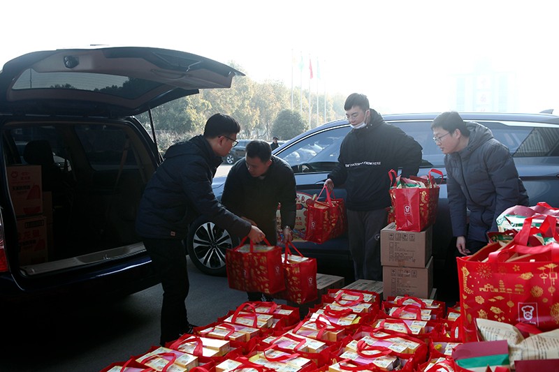 12月29日上午9點半,四藥公司團委青年團員、常州東安五菱寶駿汽車有限公司公司職員、常州日報社常州晚報周末關愛記者兵分多路,分別走進天寧區清涼東社區、浦北社區和武進區喜盈門社區,為2021年度報道過的347戶困難家庭送上了精心準備的包含米、面、油以及年貨在內的大禮包。